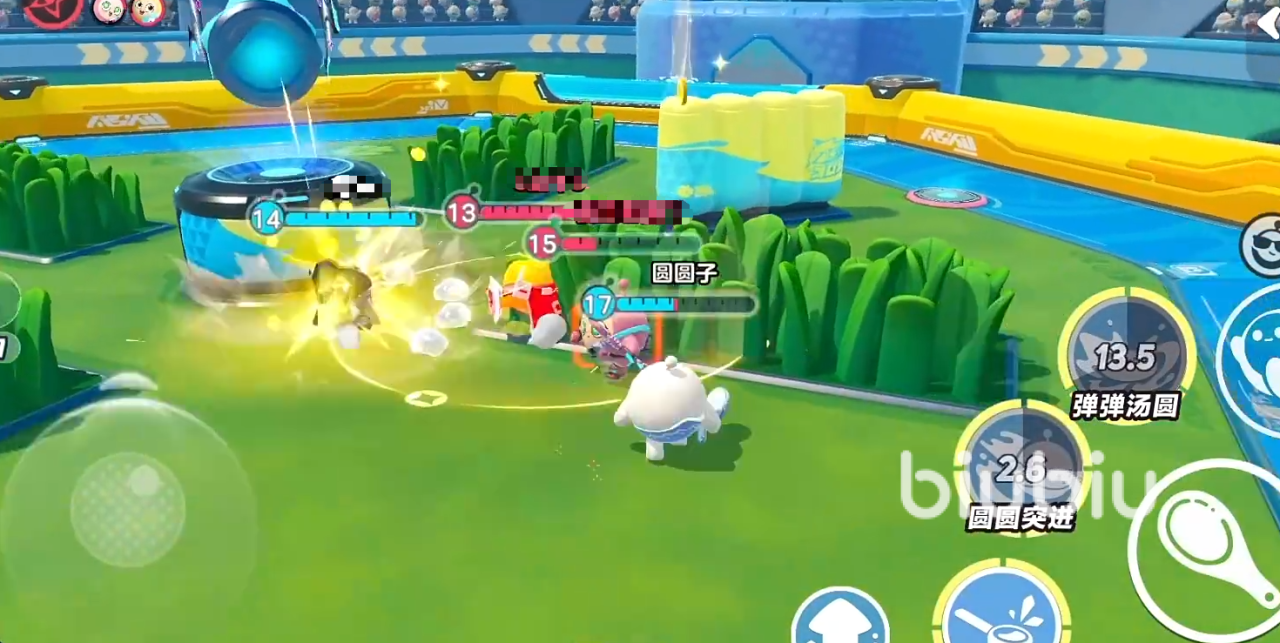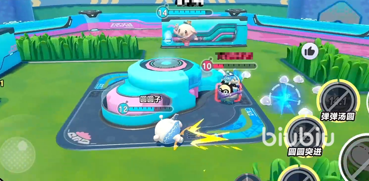 2技能“圆圆突进”,朝指定方向冲刺,撞到敌人后造成伤害停止,并造成击退效果。3技能“弹弹汤圆”,该技能释放时,它会进行连续3次跳跃,并砸向地面,对范围内的敌人造成眩晕和伤害,期间可改变移动方向,首次下落造成眩晕;