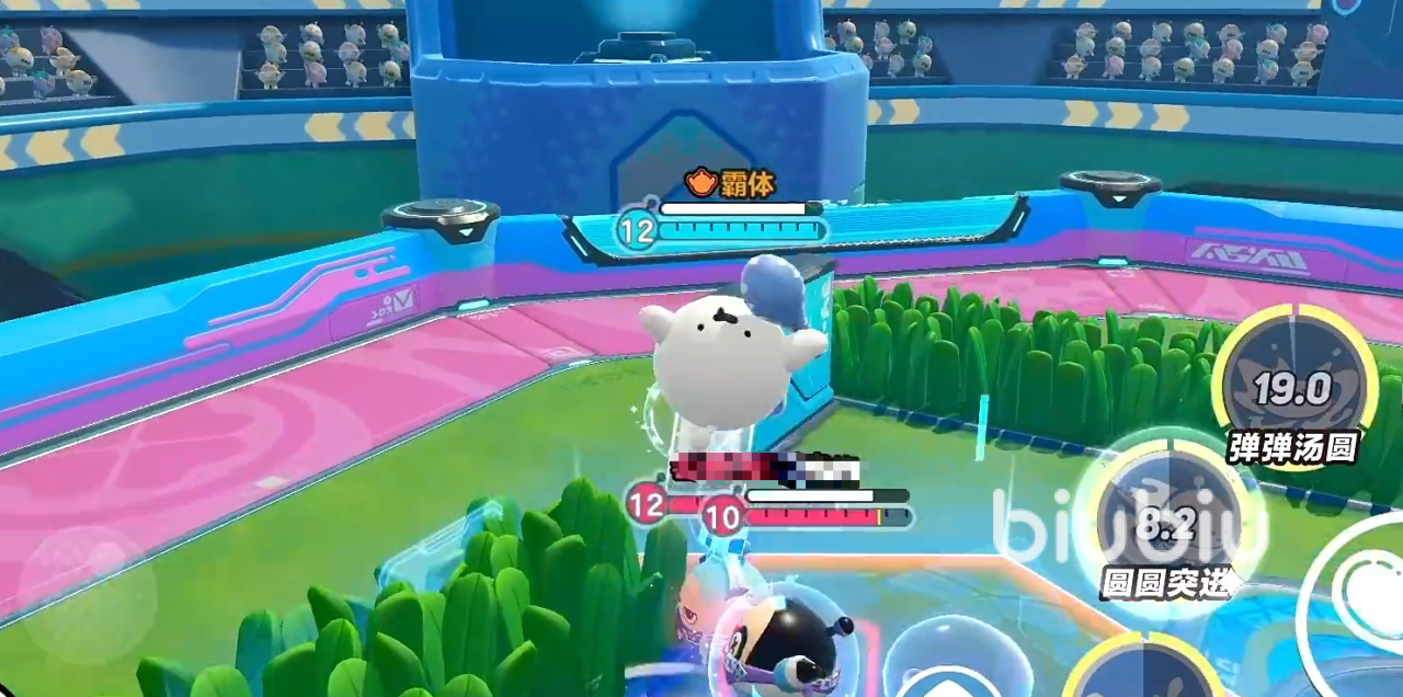普攻“青花瓷勺”,它使用青花瓷勺左右挥击,对命中目标造成物理伤害。1技能“糯糯敲击”,鼓起肚子,使用勺子敲击自己的肚子,并对敌人发射糯米米浆,对敌方蛋仔造成伤害和减速效果。