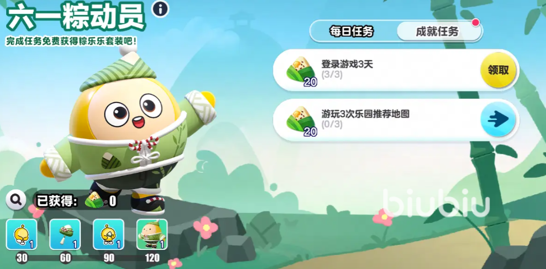 本次蛋仔派对的活动将会从5.30号开始。首先第一个活动是六一粽动员。在活动开启之后玩家们可以在主界面查看此活动的完成方法和活跃任务说明。玩家们在完成这些任务之后便可以去领取外观粽乐乐套装,除了这个套装以外,玩家们还可以获取到小粽腰包,或者各种有趣的动作。
