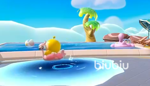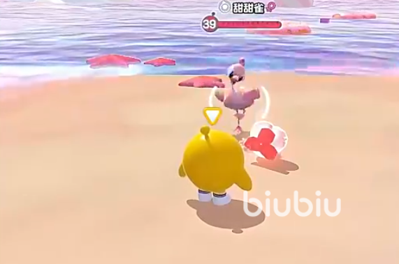 甜甜雀互动动作也很可爱,有将自己变成游泳圈,带着小蛋仔在水中悠闲划水,还有在地面上跳优雅的华尔兹、着急生气以后用嘴啄一下小蛋仔,以及在悠闲散步以后,突然发现我们快速逃离现场。