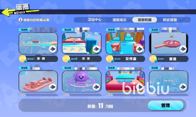 一键分享功能也非常方便,收藏界面最多可以分享5张收藏的地图,圈子里的所有成员都能点击游玩;除了自己蛋圈里面收藏的地图,还可以查看附近蛋圈,还有其他成员的收藏,整体还是非常方便的。