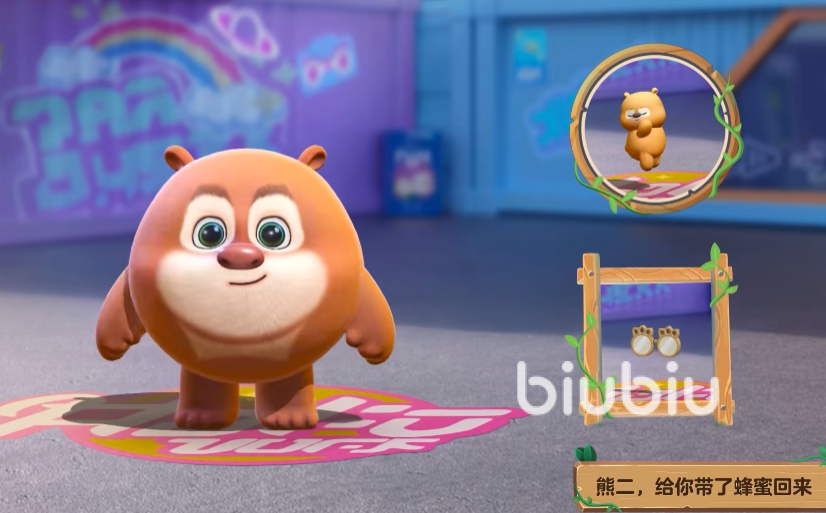 熊二在蛋仔派对里一如既往的可爱,一直带着微笑,除了皮肤上架以外,还有个蜜蜂窝配饰,上面还沾着蜂蜜,展现了熊二爱吃蜂蜜的性子。皮肤还配有限定熊二语音,纷纷中带大家梦回大森林。