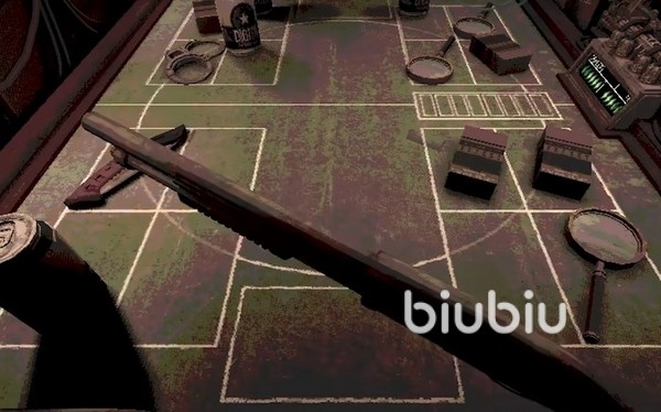 游戏有三轮,每一轮开始后庄家会随机向霰弹枪中装入一定数量的实弹和空弹,玩家可以选择射击自己或者射击庄家,如果射击自己并且房间闪出空白,说明是空弹,这样可以跳过这个回合同时玩家获得额外一回合。