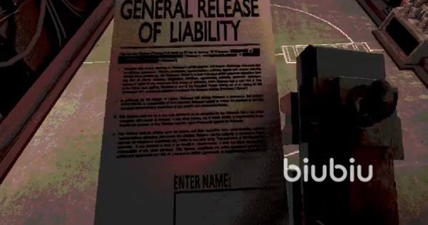初次进入该游戏的玩家会直接出现在一个酒吧的厕所里面,然后通过这个厕所绕到一个狭小昏暗的房间里面,在这里摆了一张桌子,它就是大家和恶魔进行战斗的地方,然后只要签下免责声明上的名字之后,游戏就开始了。