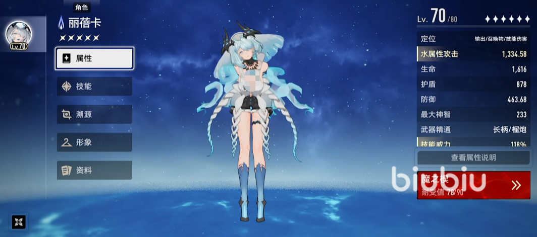 丽蓓卡是非常强力的五星对群输出角色,群体清杂能力非常强,不论是初期开荒,还是在副本中,都能发挥出强力效果,兼顾了输出和控制。绝技在空中使用,可通过召唤物协同攻击,打出更高伤害,能叠加技能倍率,对群体展开更高的输出伤害。技能1可以利用水母来进行攻击,这个水母会继承她100%属性,并对周围持续性的攻击,敌方一旦被击中就会承受水系伤害。技能3让周围对手受到水伤,并根据敌方身上效果层数,提升对应的伤害值。