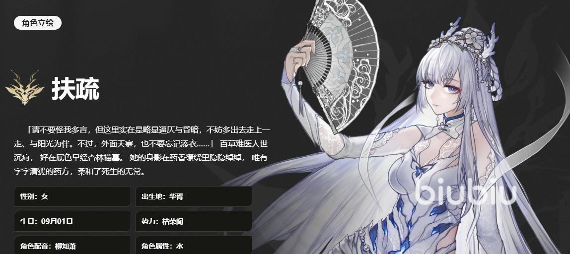 2025年09月21日 20:39 来源:魔血飞迷唇姐在二重螺旋中角色的培养十分重要,不同的角色拥有不同的培养思路,就比如扶疏这位水属性辅助定位的角色,这位角色的培养思路就比较的与众不同,那么谈起二重螺旋扶疏培养思路,在下文中就会将这个思路告诉大家,在看完下文后了解了这个培养思路后,大家就好去养成这位角色了。