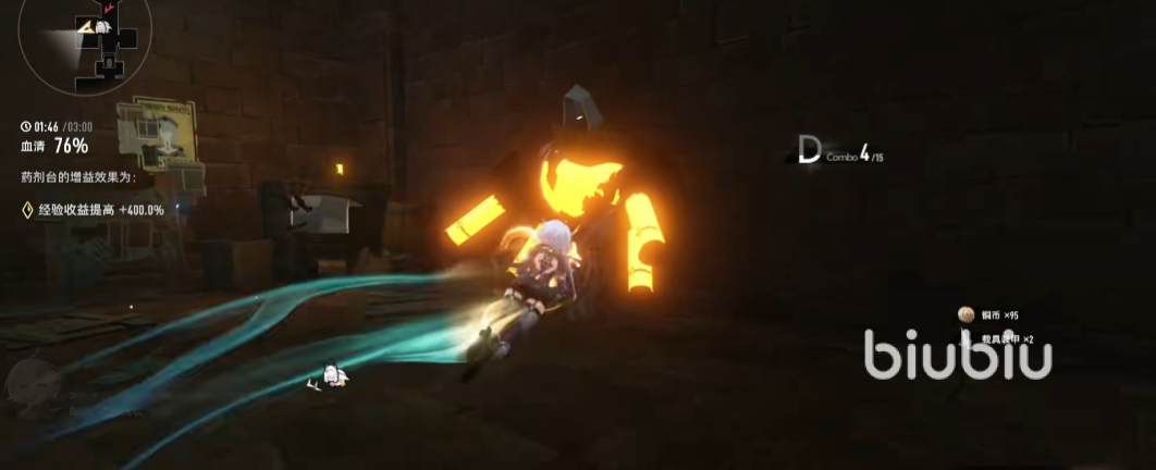 2技能“幕启”,进入兽化状态,持续耗蓝,武器也切换,一种武器对敌方实施近战的连段,另一种则是远距离的射击。在特定段数触发”二重唱”,此时获得效果和层数积攒,达到上限就进入兽化奉献状态,此时的爆发输出力度非常的高。
