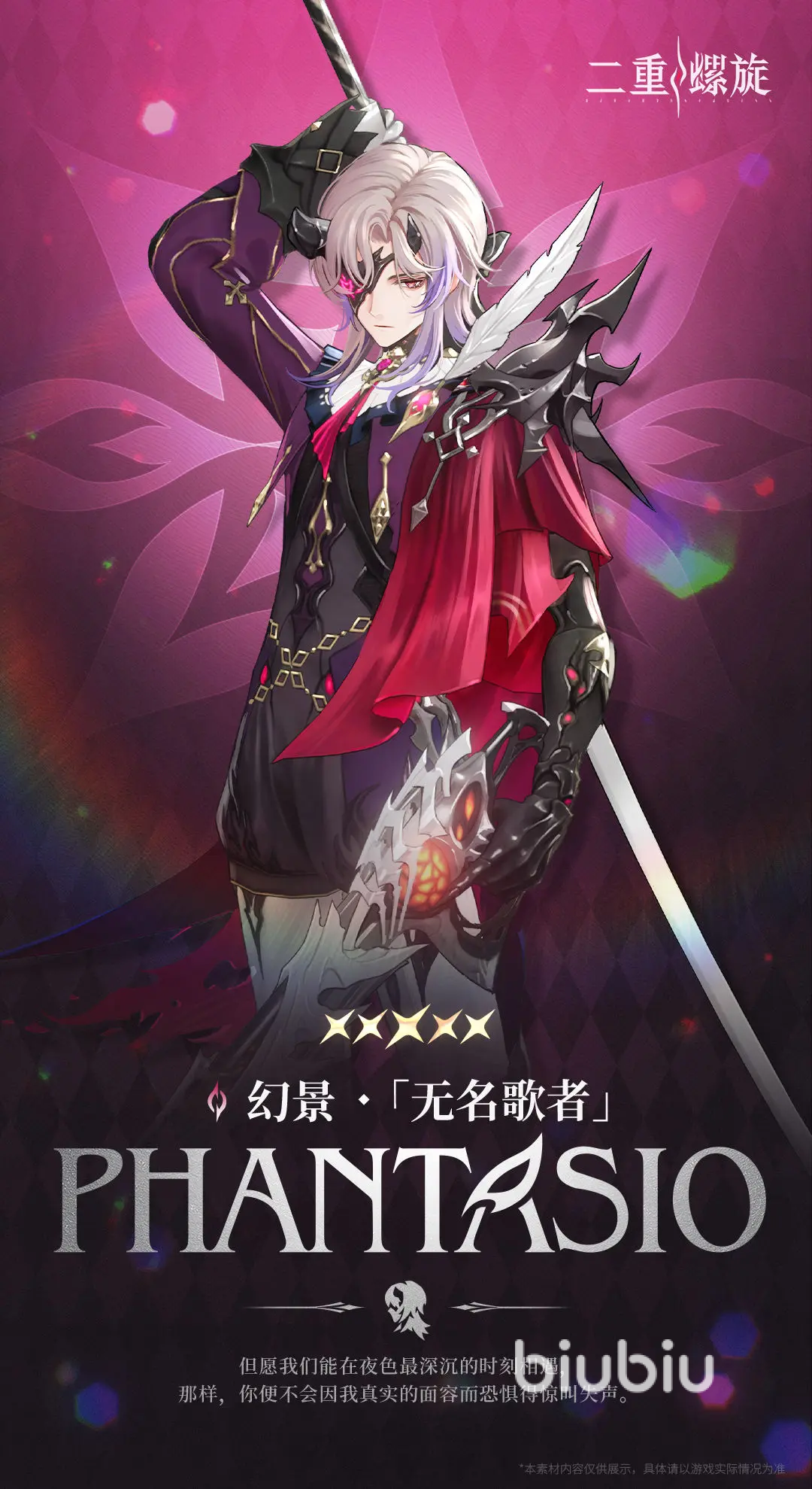 幻景这个角色是近期推出的,也是比较少见的帅气的男性角色,相当特殊的是他具备人兽双重形态,战术定位十分清晰,由于是暗属性,一般在暗队当中有良好的发挥。”柔板”、”沉浸度”、”爆发”这三个被动是他输出节奏的基调。人形态下,“宣叙调”,对敌方添加“柔板”,叠加上限10层,可重置持续时长,虽无法直接造成伤害,但是切换兽人形态是触发条件,层数越高,触发后续招式的增伤倍率就越高。
