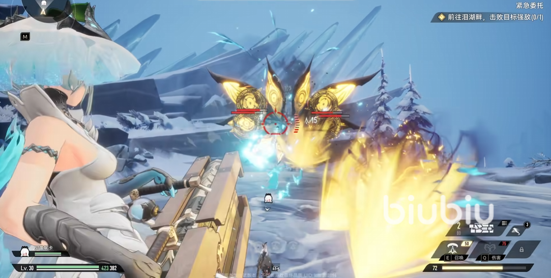 到了二阶段,boss基本都在空中,翅膀周围也有悬浮的金色光圈,这时候核心就在光圈,要集中精力攻击光圈,将所有光圈都击破,就能重创该敌人,此时她会落地,并进入较长时间的虚弱状态,此时就是输出最佳时机。