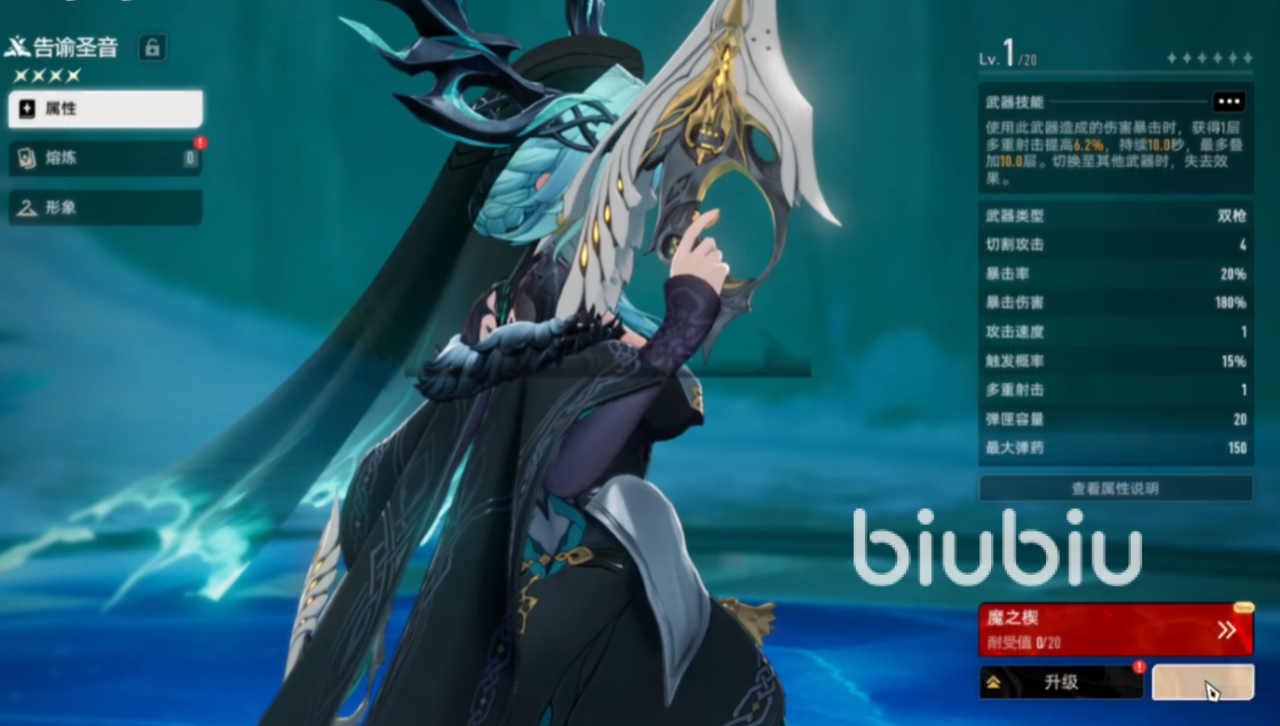 另外它的基础攻击属性虽然一般,但是暴击率以及暴击伤害却很高,所以这是把能打出巨额爆发伤害的武器。不过攻速较慢,所以要叠加起来后,用起来才会更加顺手。在实战体验中,大家可用它不断的进行双枪输出,期间还可以自由移动。