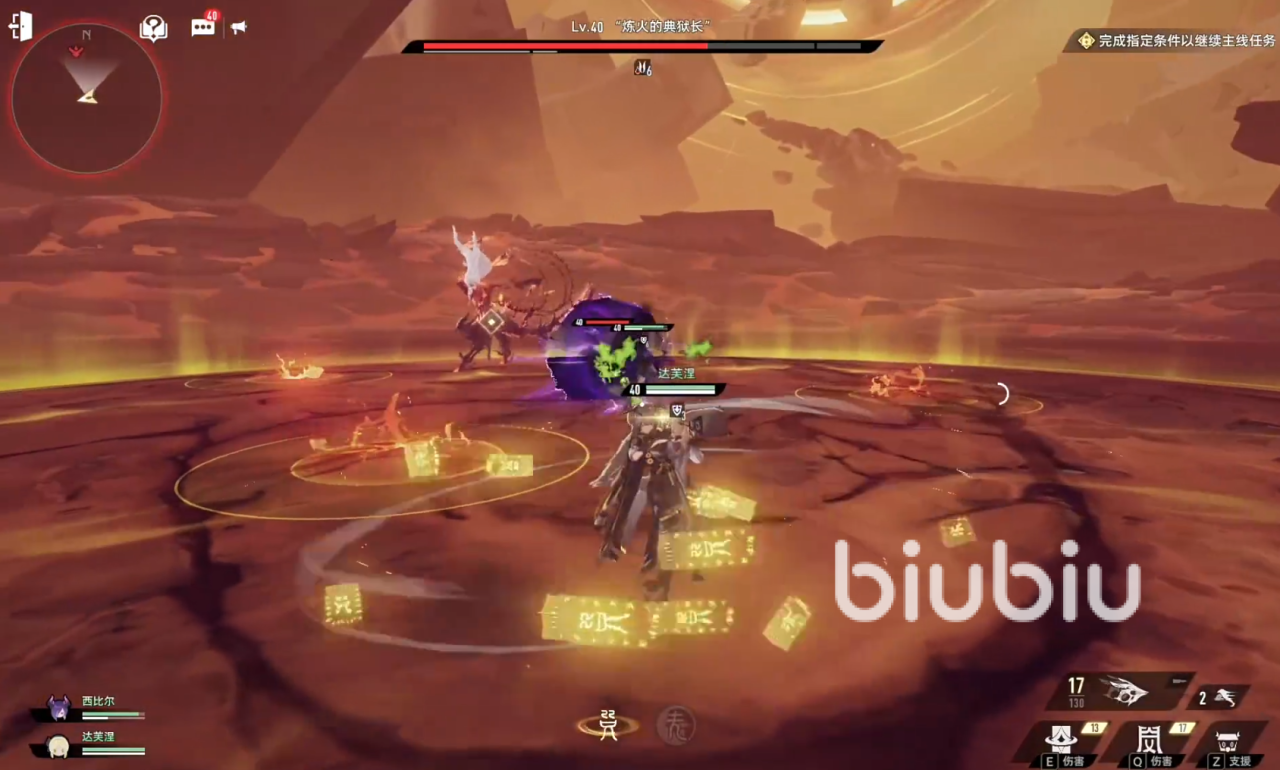由于这是个31级的副本,所以建议大家将等级提升至32~40级左右再来挑战,避免基础属性跟不上。因为是周本,所以BOSS会直接出现,并不会出现其他类型的怪物。开局她会释放火焰锁链攻击,大家注意闪避。然后就可找好位置开大招,避免被躲掉,这样还能规避一段伤害。