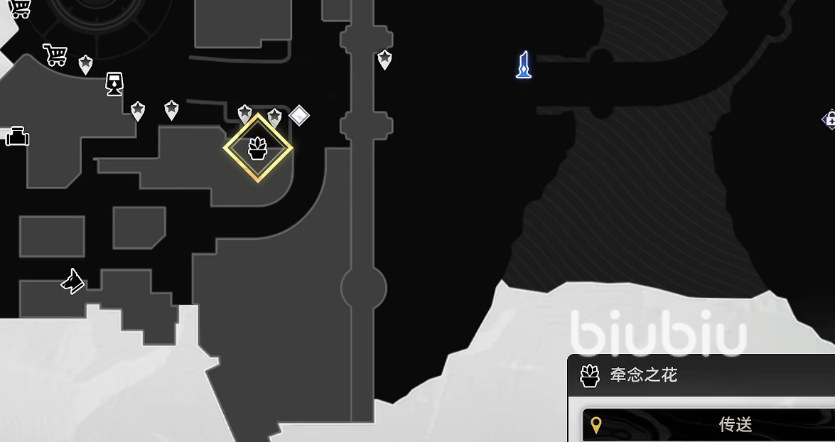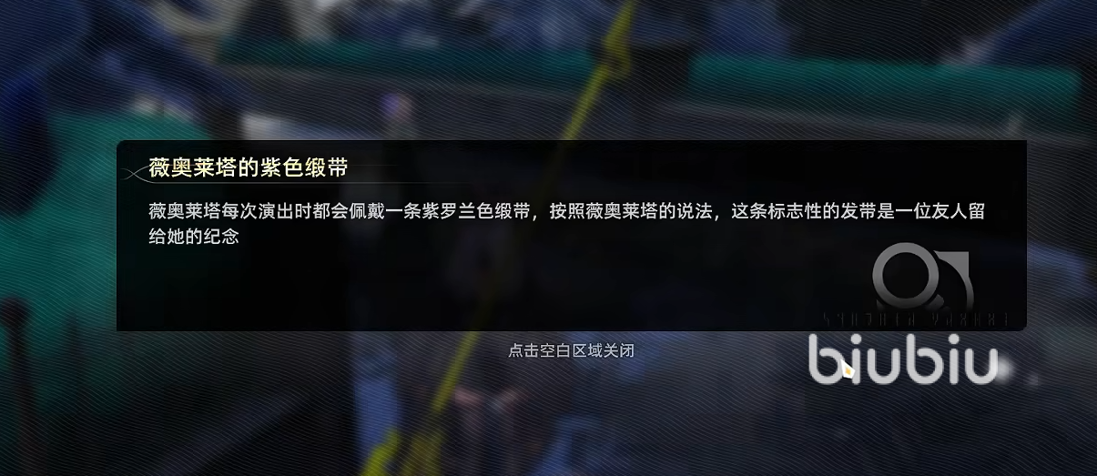 这里会出现任务提示“薇奥莱塔的紫色缎带”,每次演出的时候都会佩戴一条紫罗兰色缎带,这条标志性的发带是一位友人留给她的纪念。继续跟着任务指引,打开地图,传送到“牵念之花”的点位。