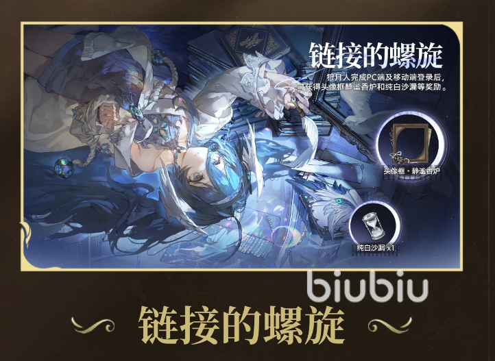 活动一是链接的螺旋,大家完成PC及移动端的登录之后可以收获一个纯白的沙漏以及一个下的您的静谧香炉的头像框;第二个活动。远行巡礼,提升历练等级能够领取丰厚的奖励5、15、25、35、45每十个级别领取一次奖励,总计可以获取20个沙漏,还有限定武器弧光百劫。奖励异常的丰厚。