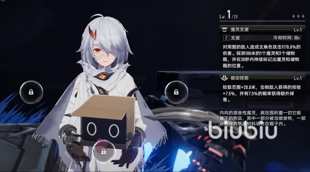 你好箱的主动技能名为【魔灵支援】,冷却时间30秒。技能释放后,会对周围敌人造成主角色攻击力1170%的范围伤害,同时还能在半径100米范围内探测出1个魔灵与1个储物箱,并在接下来的30秒内持续标记它们的位置。对于喜欢探索和收集的玩家来说,这个技能非常实用。不仅能帮你发现隐藏的宝箱与稀有魔灵,还能在清理区域敌人的同时快速找到资源点。