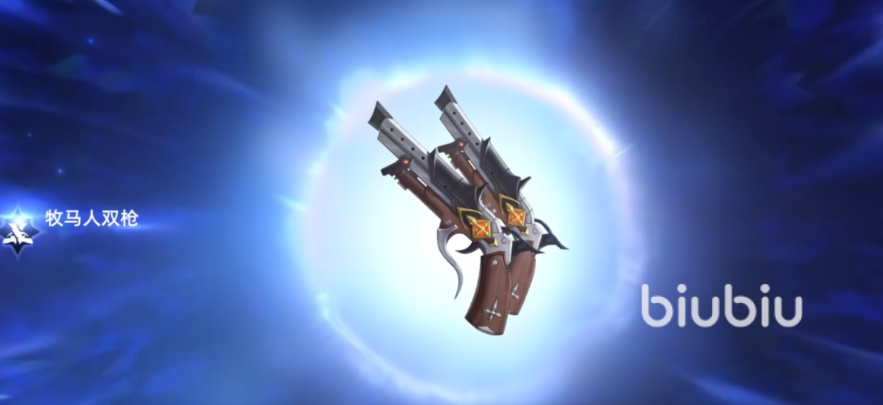 第一把武器牧马人双枪,双枪玩家的福音武器,有着非常帅气的传统枪械外观,还有着蒸汽风格的配饰以及超强的机动能力,对各位玩家来说该武器可以说是近战战斗的首选武器,能够左右开弓攻击敌人,离得越近伤害越高。