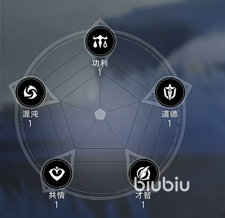 游戏的印记分为五个点,这五个点分别为混沌、道德、功利、才智和共情,这五个点是角色对玩家的视角中去看的,而不是固定在玩家身上的,就是说每一位角色看到的印记可能都是不同的,而在角色之间。