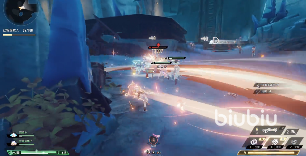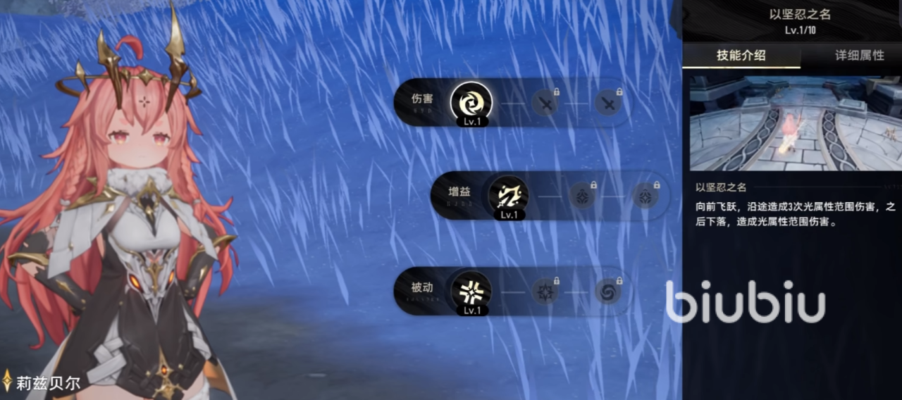 被动技能则进一步强化了她的输出能力:连击等级提升后,会增加同律武器的攻击范围和触发概率,而且蓄力攻击消耗连击等级后,这些BUFF还能持续一段时间,适量堆叠技能耐久就能延长BUFF生效时长。