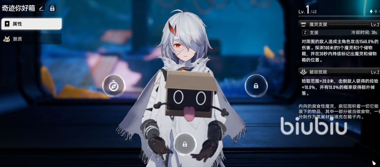 首先,要重点推荐的是“奇迹你好箱”,这只内向的腐食性魔灵总爱囤积各类物品,一部分当作食物,一部分用来填充巢穴,实用度堪称前期开荒神器。它的主动支援技能冷却仅30秒,不仅能对周围敌人造成主角色攻击1560.0%的高额伤害,还能探测100米内的1个魔灵和1个储物箱,并在30秒内持续标记位置;被动技能更贴心,不仅能将拾取范围扩大20米,还能让击倒敌人的经验增加10.0%,并有10.0%概率获得额外掉落。
