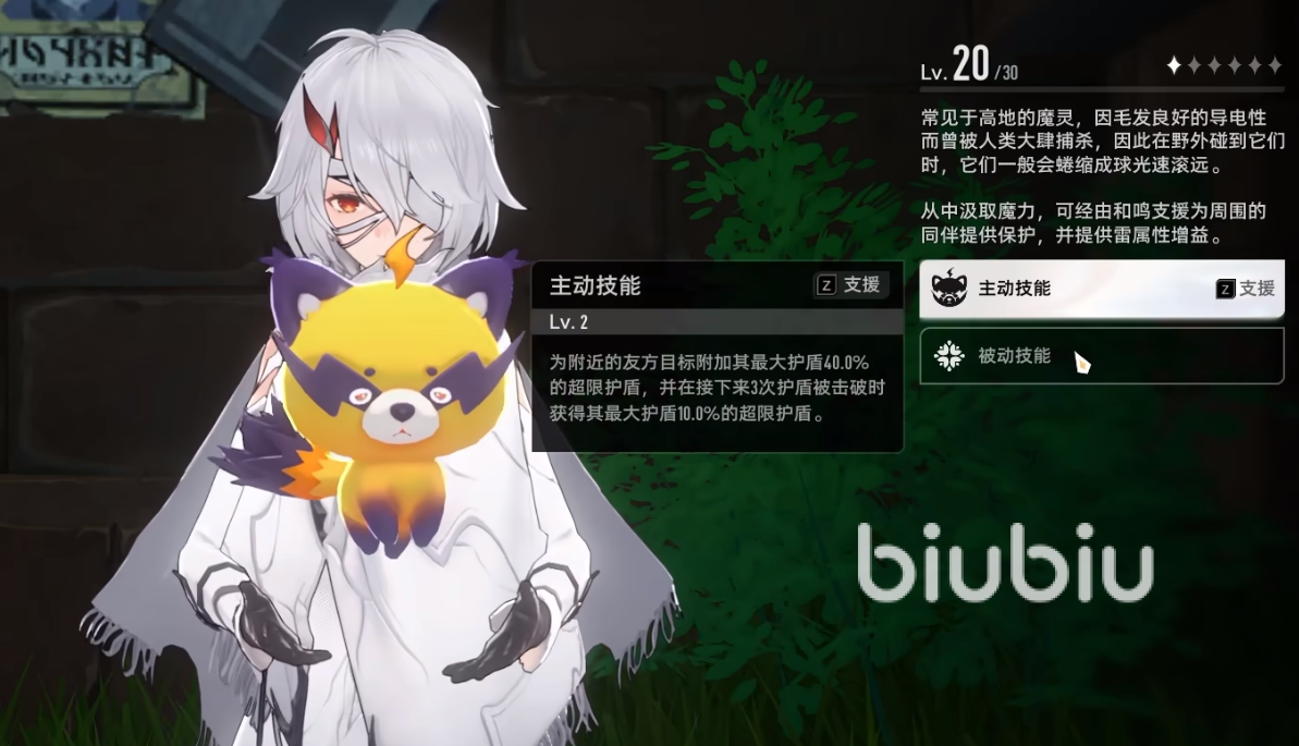 “炸毛球”则是侧重防御与增益的实用魔灵,常见于高地的它们因毛发导电性强曾遭人类大肆捕杀,如今在野外遇到时,总会蜷缩成球光速逃离。它的主动支援技能冷却40秒,Lv1就能为自身和队友附加120.0点超限护盾,还会随机触发一项增益——攻击提高10.0%、防御提高10.0%、技能威力提高7.5%或技能耐久提高10.0%,持续10秒;更贴心的是,三次护盾被击破后,炸毛球还会再次补充护盾,保护效果拉满。被动技能Lv1能为自身及协战同伴提升0.8%雷属性攻击和3.0%最大生命,既增强生存又补充输出,不管是带队攻坚还是组队防守,都是靠谱的助力。