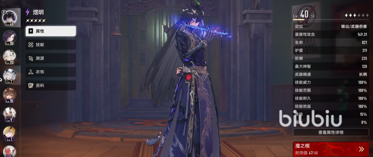接着点击属性界面就能看到所选择武器的当前属性数值/魔之楔配置以及升级和突破的按键。武器魔之楔附带八个卡槽,配置合适的魔之楔能让武器属性变得更加强大, 在实战中对敌方造成更多的伤害。通过武器突破升阶至多能额外解锁四个卡槽,附带的魔之楔属性越强,武器也就越强。常见的近战武器为太刀,对新手玩家们来说,这也是大家在游戏初期能轻松掌握的近战装备。