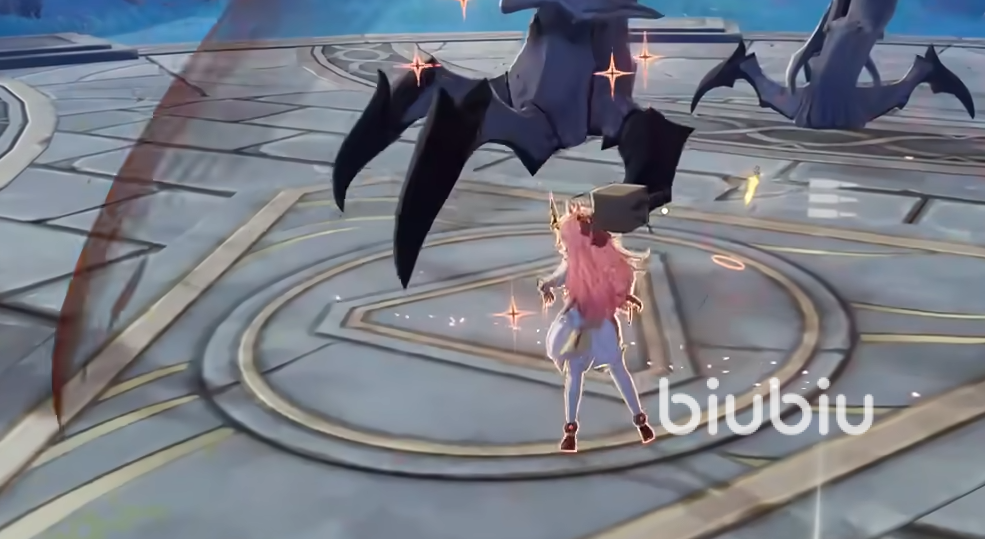 她的大招会把自己的近战武器切换成“萨麦尔”,对面前范围敌人形成光伤,使用“萨麦尔”期间进行普攻,会打出4段连续攻击,进行蓄力攻击要消耗神智,长按维持蓄力能在期间获得受到伤害降低,且不会僵直的“不坚忍”,长按结束后放出蓄力攻击会对面前范围内敌人造成光属性伤害。