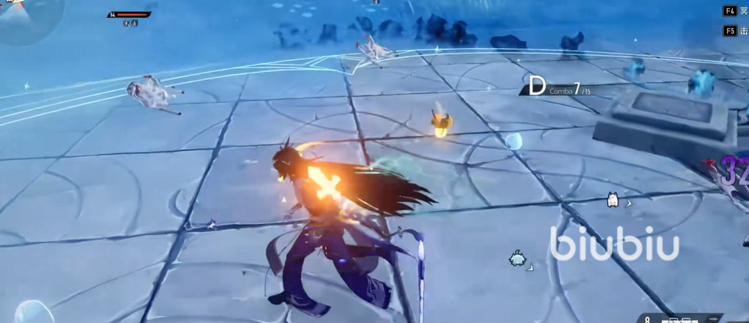 2技能“濯暗鳞”,对面前敌方目标造成雷伤,进入“玄蛟附身”状态,该状态下持续给周围敌人附加“酣战”,自己受到伤害时不会产生僵直,玄蛟围绕着他盘旋,受到伤害时,玄蛟吸收本次伤害;酣战会让敌人额外受到1次雷伤。