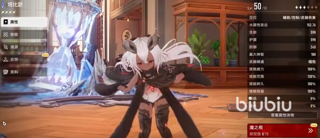 2025年05月23日 19:56 来源:月神立小拳石二重螺旋塔比瑟怎么样?塔比瑟在游戏里是个恶魔形象的小萝莉,四星水属性角色,属性面板上防御力和神智比较突出,精通使用榴炮,她的外形如此的有特点,因此也有很多的朋友对这个角色感兴趣,想知道她的技能强度如何,接下来就整理了她技能的相关情况给大家做详细介绍。
