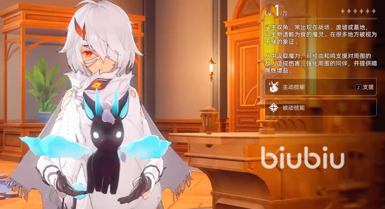 捕捉到的宠物,可以在整备界面的魔灵处查看,它们每一只有自己的主动技和被动技,选择一只出战,在战斗的时候可以释放出它们的主动技,带来各种战斗效果,被动技则通常是一些增益作用,比方说打火鸡作为火属性,它的被动就是增加5%的火属性攻击力。