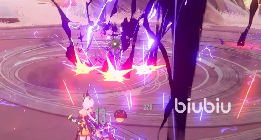 它的四会在地面召唤多个晶体,大家站在范围外可以躲避,并远程攻击它的四肢,boss四肢被打碎后会进入到处决状态,此时未被击败就会进入狂暴状态,转换四条光幕持续性转圈,并且会持续喷射晶体来攻击,大家注意躲避这个攻击,并顺着光幕来走躲避其输出,最后在转圈结束的时候,它还会进行震地攻击,这个震地只能依靠闪避带来的无敌或飞行来应对,所以建议大家使用会飞赛琪作为主控角色来面对。