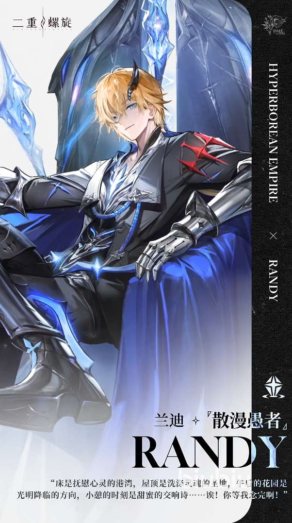 第二个角色叫做兰迪,他的外形条件也非常优越,整体形象相较于煜明的阴郁帅气,他则更加偏向于阳光的王子。他是四星的雷属性角色,精通使用单手剑。与煜明的输出型不同,他的能力会更偏向于防御,制造护盾这一块。