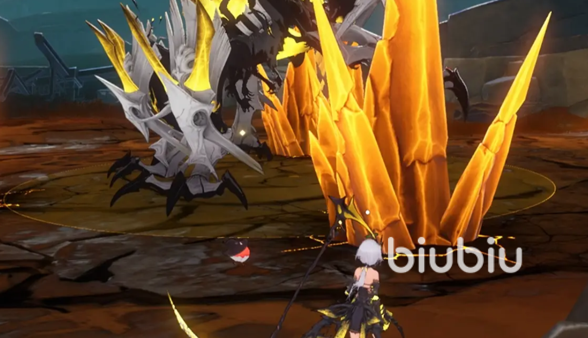 嗜晶者的技能一会对着一个范围下砸,使用时地面会有圆形的标记,大家记得提前远离就可以规避伤害,它的技能二会对一个扇形区域进行挥击,看到警示后向着后方闪避即可。
