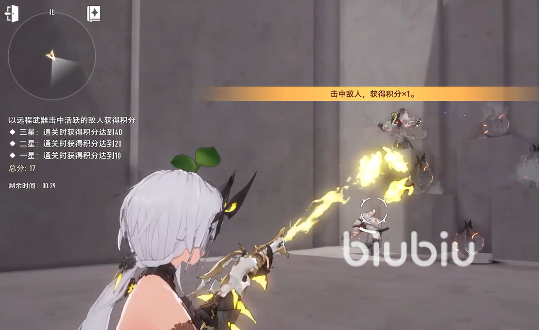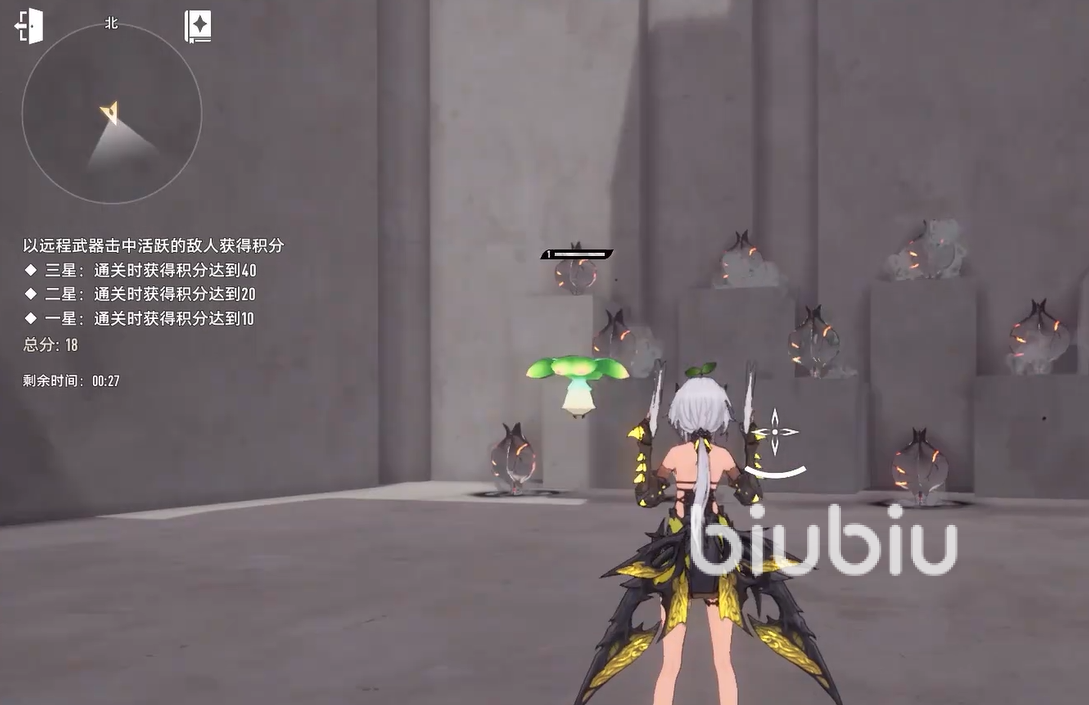 简单说一下这个试炼的玩法逻辑,只要用远程武器击中活跃的秽兽即可得分。以感叹号为提示,就能预判需要攻击的目标。相信大家的反应能力都不在话下,这个试炼三星通关的卡点便是获得40积分,其实这里更推荐大家用双枪去玩。