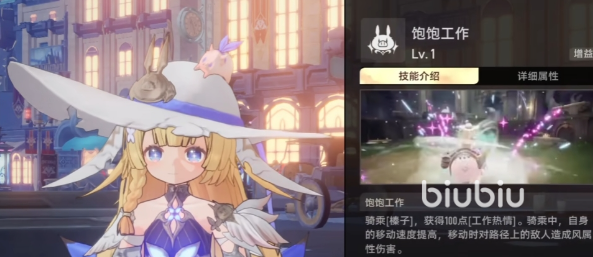 松露的二技能名为“饱饱工作”,当角色骑乘猪时,会获得100点的“工作热情”。在骑乘期间,角色移动速度会有所提升,并且在行进过程中会对沿途的敌方单位造成风元素属性的伤害。需要注意的是,在骑乘状态下,角色无法直接使用武器进行攻击,而是要借助猪“榛子”来发动攻势。若再次激活该技能,角色将结束骑乘状态,并施展一次“蹄蹄小跑”技能。