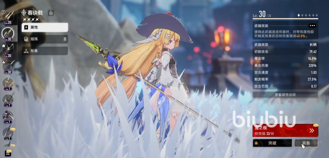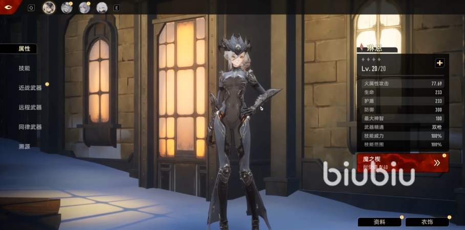 左上角可看到角色的属性,姓名,以及稀有度之类的情况。从数据面板就能得知角色的定位,以及基础属性,想要调整属性,就需要在魔之楔模块中自由搭配。所有的角色都有属于自己的属性,在攻击时如果触发额外效果,就会给敌人附加1个2秒一跳的DOT伤害,该伤害只受到角色攻击力的影响,光暗角色的属性攻击会有额外的效果。生命,护盾,防御,这三项词条是基础属性,也当做某些角色的技能使用条件。
