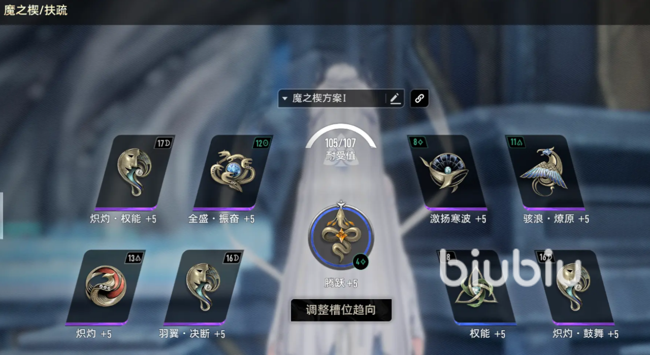她的“形与神俱”会对自身以及周围的敌人造成水属性伤害,然后为自身附加上一个护盾和攻击速度提升,并为附近的队友施加护盾和“九针治未”,该效果可让队友们的技能威力上升。
