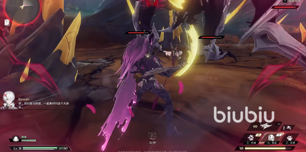 施放“幕启”时,他就会进入到”化身为兽”的状态,该状态的开启要持续消耗神智,武器技能更换为“狂怒的锐爪”、“悲恸的鸣啸”。这两个招式,前者是近战连段的施展,后者是远程的射线;