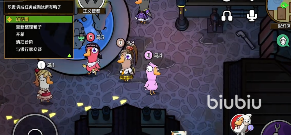 除了找凶手之外,做任务也是一个重要的目标,地图上会有很多的任务点。鹅在完成这些任务时就可以推进任务的进度,只有把所有的任务做完,那不管鸭子还在不在,鹅阵营都可以直接获胜。但鸭子也会有对应的手段,他们可以做一些破坏任务,例如捣乱地图的某一个区域。主要的目的就是制造混乱,让鹅没有办法去安心的做任务,与此同时还可以趁乱刀人。另外要注意的是鸭子也可以去做鹅的任务,但是所做的任务根本就不会算数,没有办法推进进度,只能够掩人耳目。