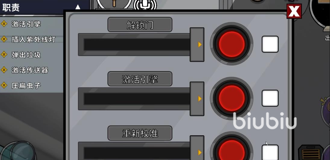 在了解连电源的操作之前,先来看一下发动机任务。可以直接触发引擎破坏,破坏一旦开启之后,鹅就需要马上冲到发动机那一边。将拉杆拉下来,等到右上角的按钮变绿之后,可以把拉杆又拉上去。这套操作下来之后引擎破坏就已经完成,而如果没有及时的完成开机校准,那就算鸭子直接赢,效率还是比较高的。鸭子在保安室做完任务之后会触发传送破坏,关键是这边破坏开启之后,而那边没有任何的提示。