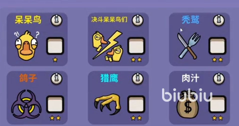 决斗呆呆鸟们需要在另一只呆呆鸟死后被投票淘汰才能取胜,完成专属任务能获得杀死另外一只呆呆鸟的能力,玩他要规划自己的任务路线,要注意好这一路上不要被坏人给刀掉,拿到技能后迅速刀人,最后的鸽子是将每一位玩家给感染,因为感染技需要距离别人很近,所以玩他最重要就是取得别人的信任来抱团。
