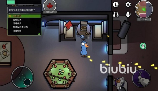 鹅鸭阵营需要合作完成任务,同时也需要观察、沟通以及投票来找出隐藏的潜伏者。鸭阵营的玩家可以伪装、潜伏,通过破坏、暗杀、策略误导来混淆视听,进而取得胜利。
