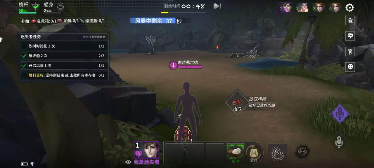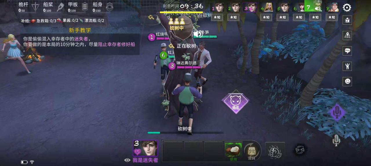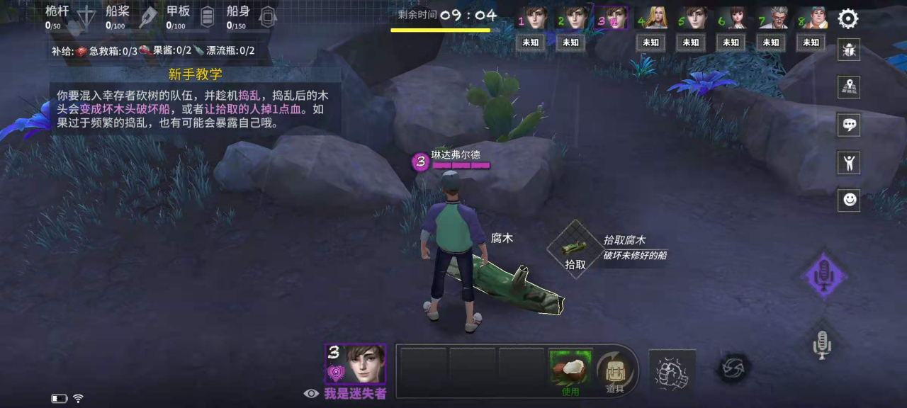 而迷失者常用的隐藏方法有以下几个,第一个是抢着和大家一起砍树,在砍树的同时进行小破坏,在砍完树后马上捡起木材,但是不要立即前去维修点修船,而且是四周捡一下腐烂的树木,然后在前往船只的维修处使用腐烂的木材,既可以隐藏自己又可以起到破坏的作用。