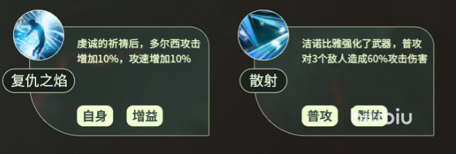 另外两个技能分别是定时对敌方造成指定量的伤害,但也会相应的提升自己攻速。还有一个是增益效果,可以让这个角色的出场能量变得更多,也会有一定的攻速加成,后者可以让此角色用最佳的状态与对方进行对战。