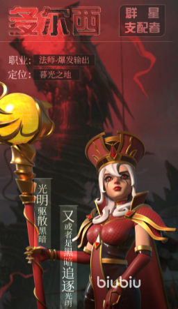 多尔西是一名爆发输出型法师,号称群星支配者,在众多法师当中拥有着最高的爆发能力,另外还有这非常恐怖的面板,高达上千万的攻击力,几十亿的血量,非常的惊人面板属性甚至会让人忘记她是一个法师。