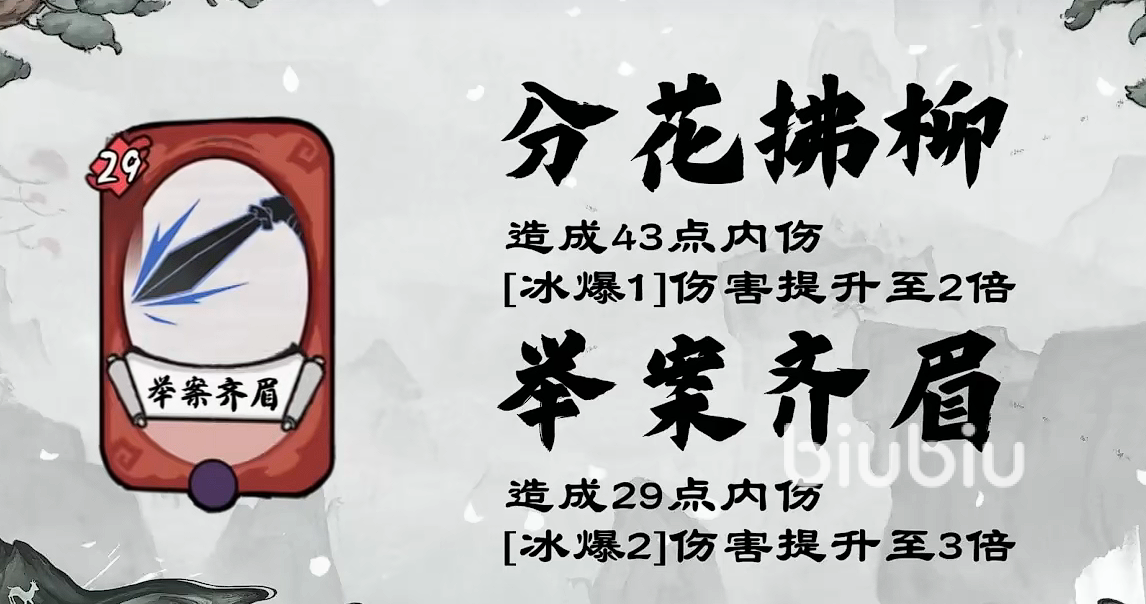 最后给大家带来的便是寒剑流流派,该流派的基础伤害表现很弱,要以给予敌方叠加韩级buff来增加后续输出。就点类似于给别人中毒的概念,尽量在游戏前期阶段给敌人增加高额层数的寒疾,随后用其余可以引爆这些buff的技能,产生高额的冰爆伤害,在最后几回合内打出高额输出。