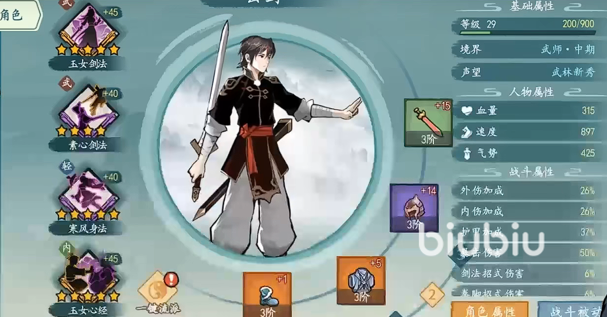 这个流派就如同其名,快剑快剑就是剑士很快,招式很多的流派。不同于傲剑流主打的一个叠buff高伤输出,快键流对于buff的叠加方面不是特别看重,更多的是以量取胜。游戏中的直观表现在于可以一回合内打出许多张剑法招式,即便每一个剑法整体伤害方面可能没有傲剑流伤害那么高,但是只要数量多的话,哪怕再刮痧也可以对敌人造成相当不错的伤害。