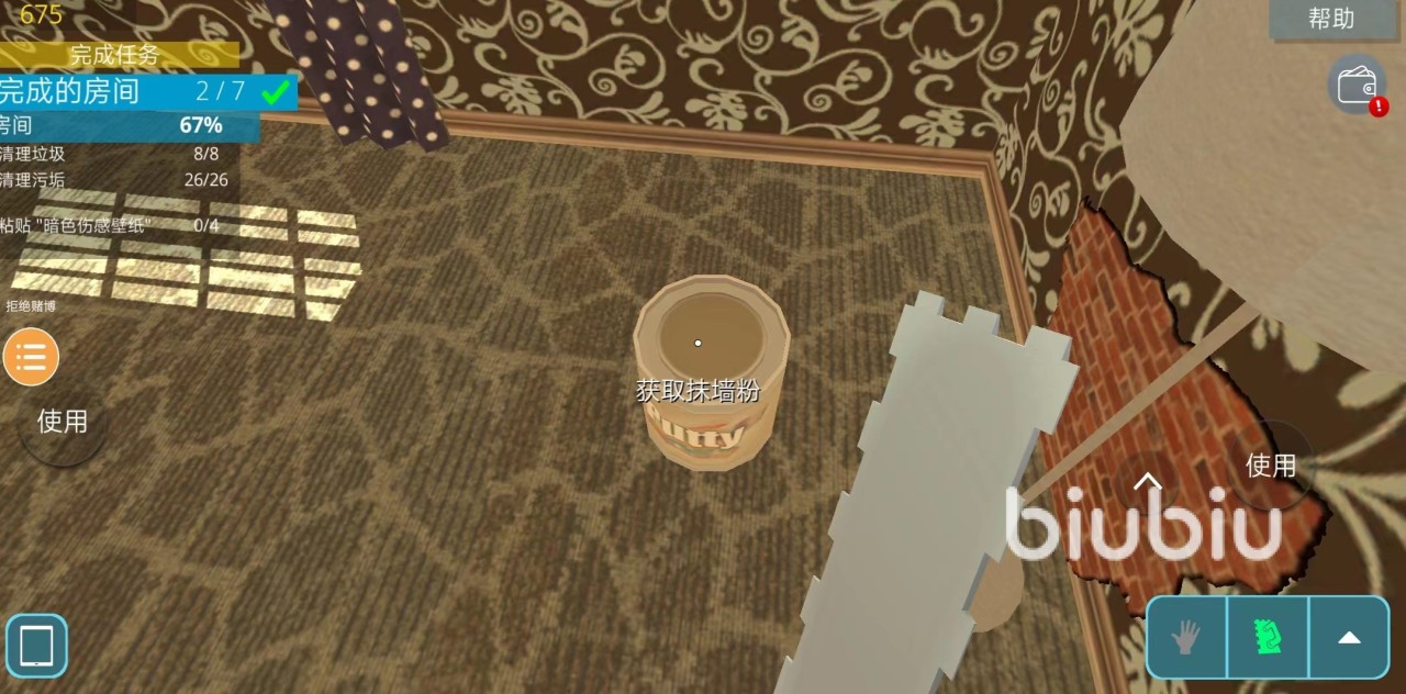 对于墙面上有破洞想要直接铺设壁纸这个操作,在手游版本中是不支持的,系统会提示,需要现在墙面上抹上腻子粉,这个操作到是很符合现实情境中的装修操作步骤。那么腻子粉在哪里?