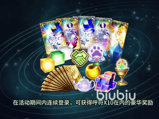 在周年开启之后,玩家们可以通过每日登录获取到大量的豪华奖励。这里面除了大量的物资之外,玩家们还可以获取到包括10呼符在内的特别奖励。同时参与10打纪念活动的话还可以进行最多220抽的圣晶石和呼符。
