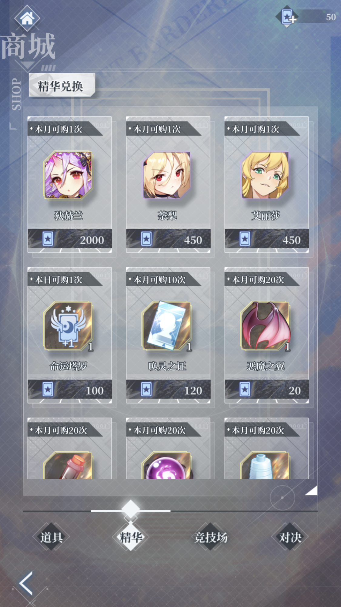 命运塔罗的获取门槛比较高,要从商城中的精华商店获取,100点精华才能兑换一张命运塔罗,精华的获取是很难得。用1280魂晶进行一次十连才有50点的精华。命运塔罗的兑换要求100点精华意味着要进行2次十连才能兑换一张。命运塔罗的兑换一天仅限兑换一张。