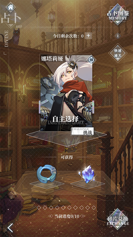 占卜中,十张卡牌的副本全通加上首通的奖励,一共可以获得27个圣装碎片。但是需要30个碎片才能合成一个圣装,在少三个碎片的情况下,要有一张命运塔罗就能在当天拥有一件圣装了,就很香。