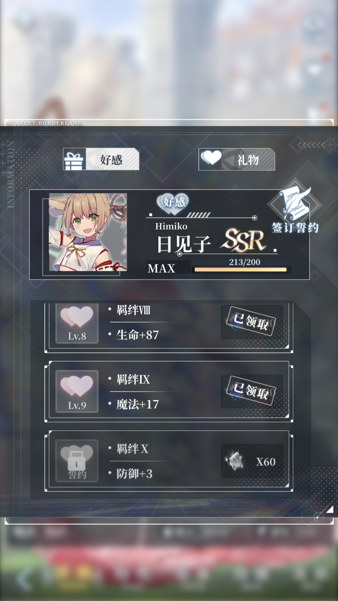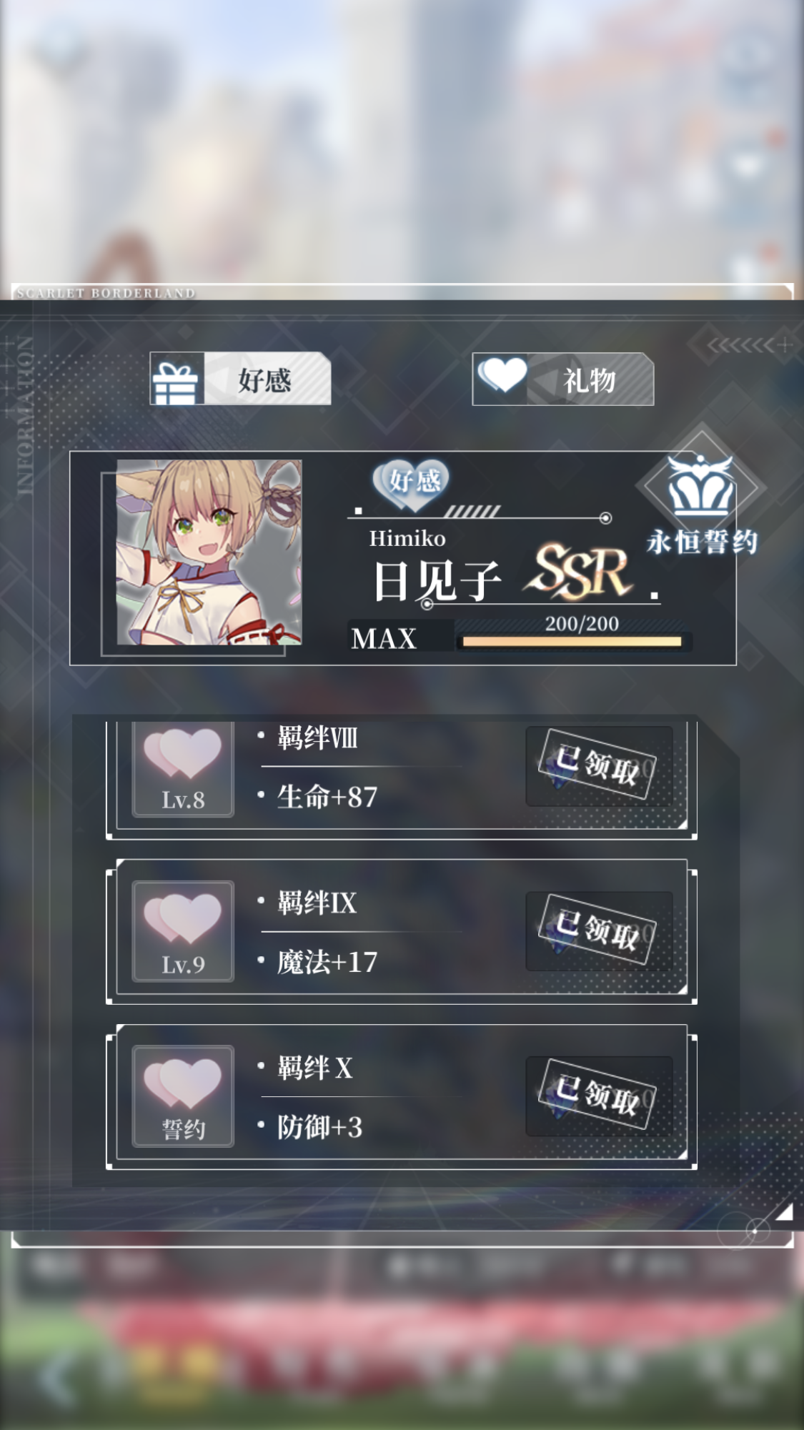 签订完誓约后,画面就会从对话中再回到该唤灵的好感度页面,这时候好感度会显示MAX,并且是200/200满值的状态,唤灵名字上方会显示永恒誓约的字样。完成誓约不要忘记领取下方的誓约属性加成和魂晶奖励。